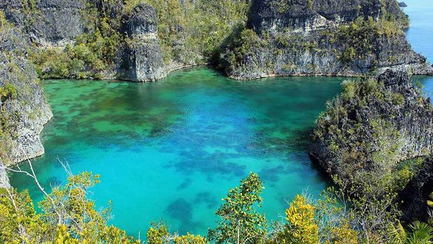 Yang ini namanya Laguna Bintang. Seperti namanya, tempat ini memiliki laguna berwarna hijau toska yang berbentuk seperti bintang. Bukan buatan, ini terbentuk secara alami!