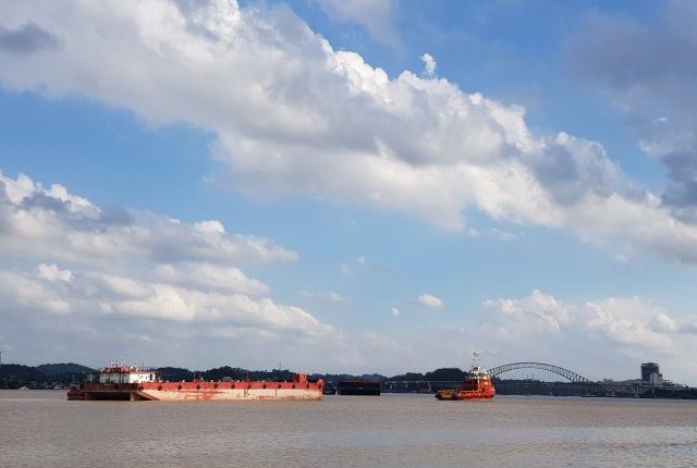 لحظة مشاهدة طوافات الفحم المار في النهر أمام أكبر مول في ساماريندا BIG Mall