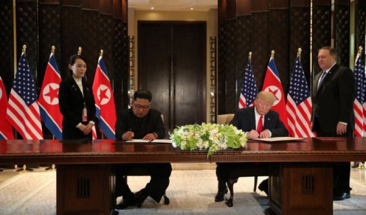 جاكرتا، إندونيسيا اليوم –  وقع الرئيس الأمريكي دونالد ترامب والزعيم الكوري الشمالي كيم جونغ أون وثيقة شاملة عقب اللقاء التاريخي يهدف إلى إخلاء شبه الجزيرة الكورية من الأسلحة النووية.