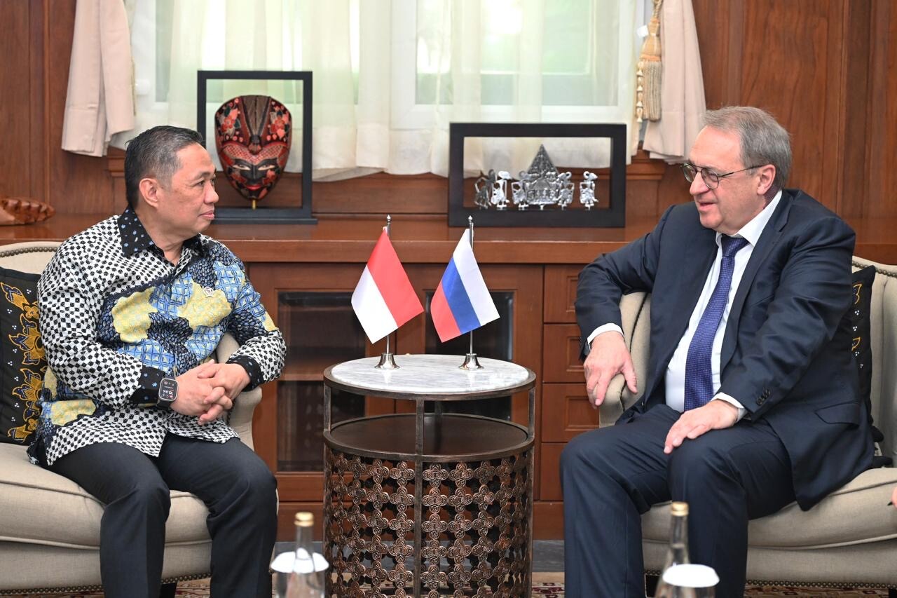 جاكرتا, إندونيسيا اليوم – عقد نائب وزير الخارجية الإندونيسي، محمد أنيس متى، اجتماعًا ثنائيًا مع نائب وزير خارجية الاتحاد الروسي والمبعوث الخاص للرئيس الروسي لشؤون الشرق الأوسط وأفريقيا، ميخائيل ليونيدوفيتش بوغدانوف، وذلك في جاكرتا يوم الاثنين (27 مايو).