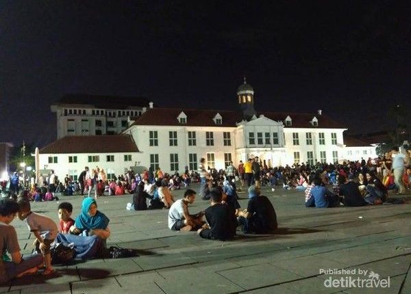 Pada malam hari suasana ramai pun masih terasa. Taman Fatahillah sudah dihiasi oleh tata lampu yang baik sehingga pemandangan klasik di siang hari masih bisa dinikmati wisatawan pada malam harinya.
