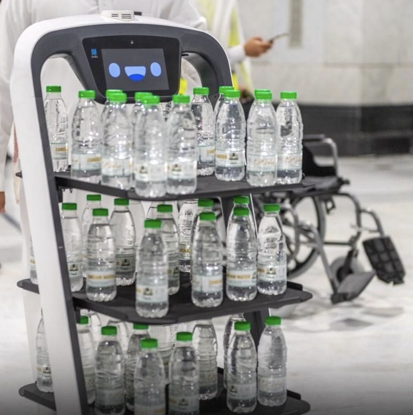 وتلبّي الحاويات المتجولة احتياجات الحجاج في المناطق المزدحمة مثل صحن المطاف. بالإضافة إلى ذلك، توزع الرئاسة العامة لشؤون المسجد الحرام والمسجد النبوي بسخاء قوارير صغيرة من المياه داخل المسجد الحرام بمكة المكرمة، وتضمن توفرها في المسجد، في المرحلة الأولى، وحتى في أثناء الصلاة الجنائزية.
