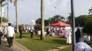 Aksi 212 di Monas, panitia mengimbau agar seluruh peserta tidak menginjak rumput yang ada di sekitar lokasi.
