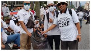 Peserta Aksi 812 di Malaysia dengan sukarela mengumpulkan sampah di aksi unjuk rasa gerakan anti-ICERD di Daratan Merdeka Kuala Lumpur.