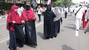 Dilansir bahwa sejumlah peserta Reuni Akbar 212 membawa kantong plastik untuk tempat sampah yang dipungut dari sekitaran Monas.
