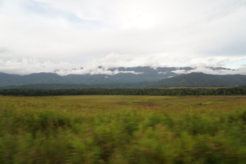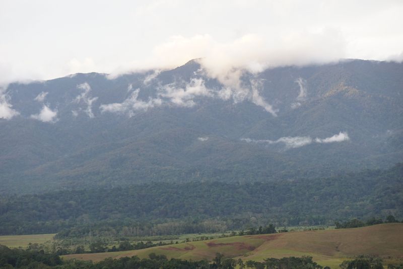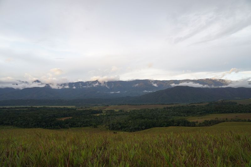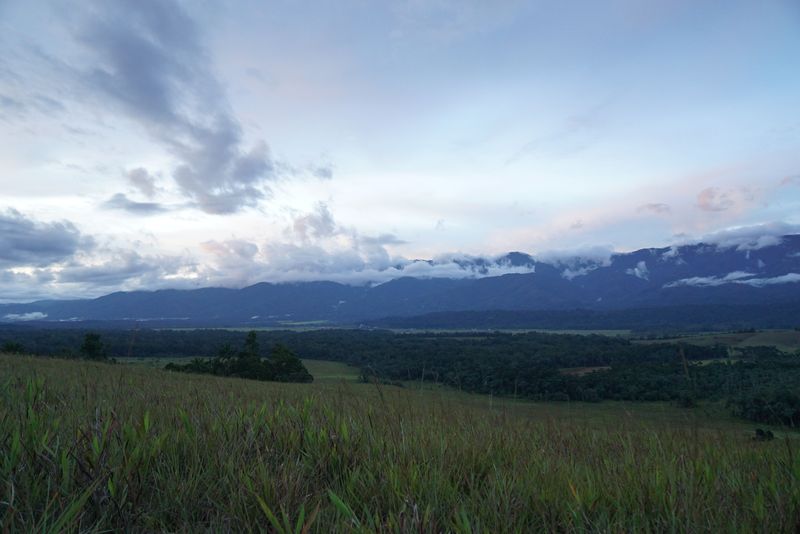 Dari atas bukit ini, terlihat barisan pegunungan Kebar yang malu-malu ditutup awan.