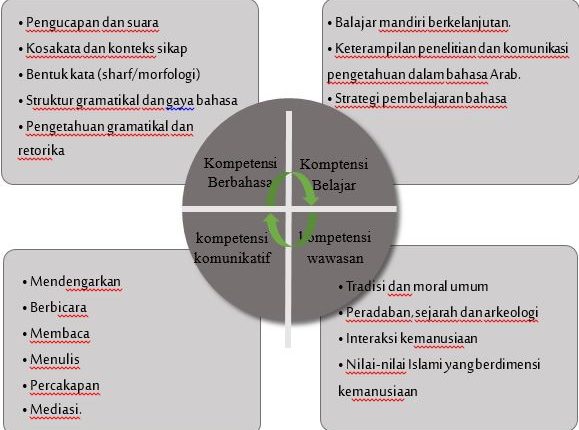 Pembelajaran bahasa kedua yang sukses akan terealisasi dengan membantu peserta didik menemukan wawasan bahasa tersebut, membangun kompetensi  komunikasi dengannya dan mengembangkan keterampilan meneliti dan belajar yang berkesinambungan. Oleh karena itu, program ini bertujuan untuk membangun empat kompetensi berikut: kompetensi berbahasa, kompetensi belajar, kompetensi komunikatif dan kompetensi wawasan. Korelasi antar keempat kompetensi tersebut dapat diilustrasikan sebagai berikut: