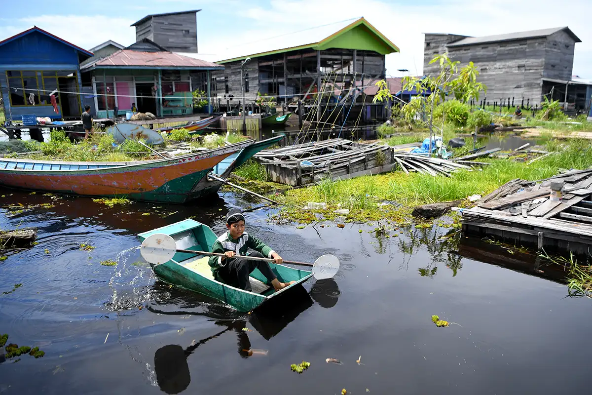 موارا إنغلام.. صورة حيّة لقرية عائمة وسط بحيرة خلابة في كوتاي كارتانيغارا بكاليمانتان