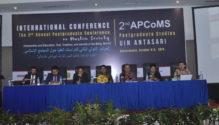 Bertempat di hotel Rattan Inn Banjarmasin, 07-09 Oktober 2019 Pascasarjana UIN antasari Banjarmasin mengelar Konfrernsi Internasional yang mengankat tema” Humanities and education, Text, Tradition and Identity in the Malay Word” konferensi ini di buka oleh Walikota Banjarmasin. Kegiatan yang berlangsung selama dua hari dihadiri oleh para pemakalah dari belahan dunia diantaranya dari Amerika Serikat, Australia, Malaysia, dan Arab Saudi. Diantara pemakalah yang sangat menarik adalah Prof. Dr. Nayef Al Barraq ( Dekan Fakultas Adab Thaif Universty) yang memaparkan tentang hubungan bahasa dan budaya Arab, dalam paparannya beliau mengatakan bahwa hubungan itu terjalin lama dengan adanya tulisan Arab melayu dan juga kosa kata Indonesia yang berasal dari bahasa Arab seperti mahkamah, mufakat dll. Menurut ketua panitai pelakna konferensi Dr. Faisal Mubarak Bin Seff Konferensi tahunan kali ini dihadiri oleh 300 lebih peserta dari seluruh Indonesia. Beberapa rekomendasi diahsilkan dari konferensi ini diantaranya adalah diperlukan kajian dan kaloborasi riset yang dapat mendekatkan antara dua kebudayaan yaitu kebudayan Islam dan Melayu. Juga memperkuat posisi dan kedudukan bahasa Arab di tanah Melayu (Indonesia, Malaysia)