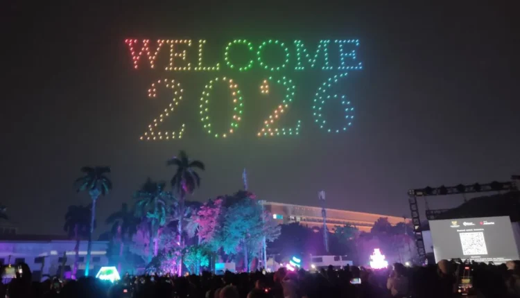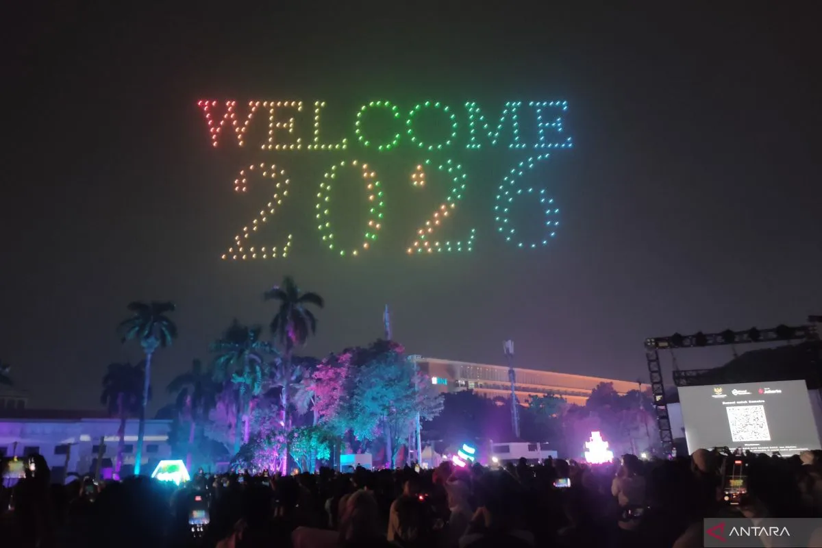 جاكرتا، إندونيسيا اليوم – أضفى عرض أضواء الطائرات المسيّرة مزيدًا من البهجة على احتفالات استقبال العام الجديد في منطقة كوتا توا التاريخية، بتامانساري، غرب جاكرتا.
