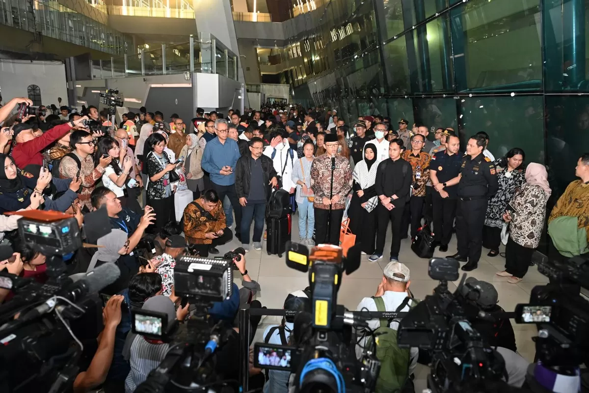 “Kami mengucapkan selamat datang kembali ke Indonesia dan selamat berkumpul bersama keluarga,” ujar Sugiono saat menyambut para WNI.