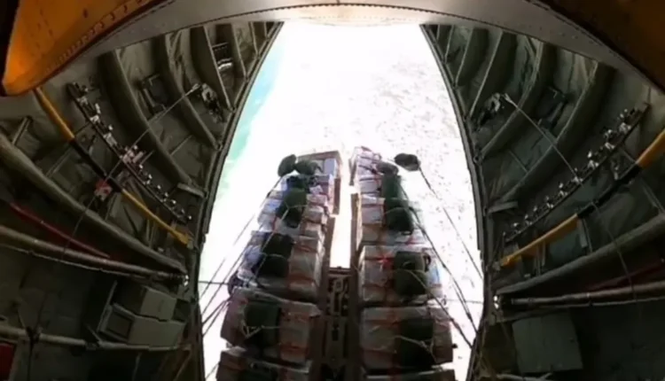 بزناس والقوات المسلحة يواصلان دعم الشعب الفلسطيني في ثاني إسقاط إنساني
