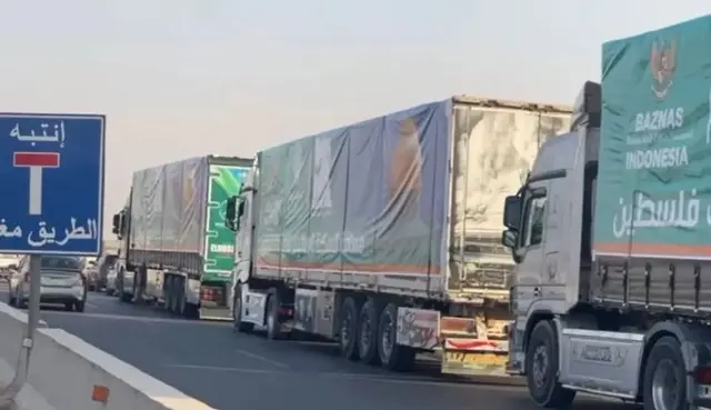 إندونيسيا ترسل ١٤ شاحنة جديدة محمّلة بمساعدات إلى غزة