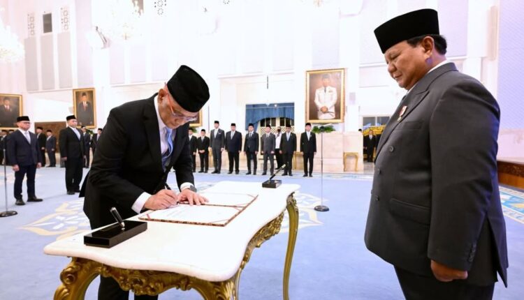 جاكرتا، إندونيسيا اليوم – أعلن الرئيس الإندونيسي برابوو سوبيانتو، يوم الإثنين (٨/٩)، تعيين محمد عرفان يوسف وزيرًا للحج والعمرة، وتعيين دهنيل أنزار سيمانجونتاك نائبًا له، وذلك في مراسم رسمية أُقيمت داخل القصر الرئاسي في العاصمة جاكرتا.