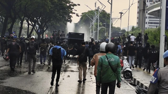 تم دفع حشود المتظاهرين أمام البرلمان إلى منطقة سبارك سنيانغ يوم الخميس (28/8/2025). صورة: ليثي همام/كومباران