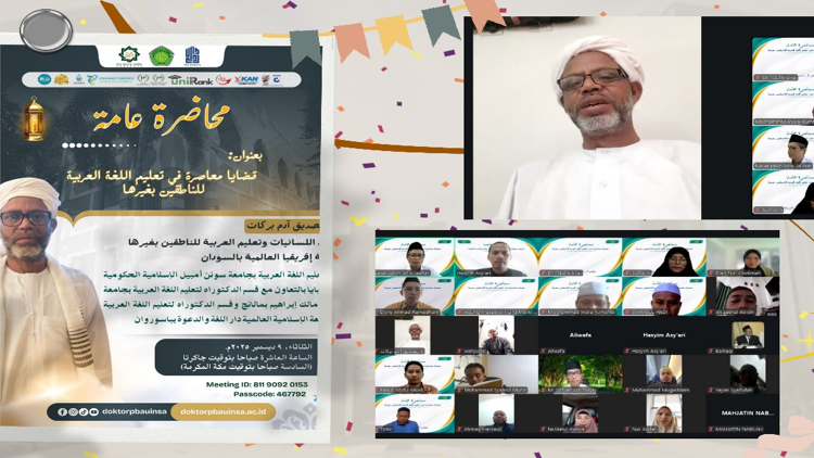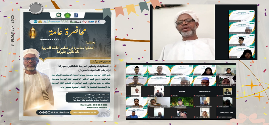 سورابايا، إندونيسيا اليوم – في محاضرة عامة متميزة حملت عنوان “قضايا معاصرة في تعليم اللغة العربية للناطقين بغيرها”، دعا البروفيسور الصديق آدم بركات، أستاذ اللسانيات وتعليم العربية بجامعة إفريقيا العالمية بالسودان، إلى ضرورة الانتقال الجذري نحو مرحلة ما بعد الطريقة في تعليم العربية للناطقين بغيرها للتغلب على قضايا المعاصرة التي تتعرض لها. جاءت هذه الدعوة خلال «محاضرة عامة» نظمها برنامج الدكتوراه بقسم تعليم اللغة العربية في جامعة سونن أمبيل الإسلامية الحكومية بسورابايا، بالتعاون مع جامعتي مولانا مالك إبراهيم الإسلامية الحكومية بمالانج، والجامعة الإسلامية العالمية دار اللغة والدعوة في باسوروان، يوم الثلاثاء 9 ديسمبر 2025.