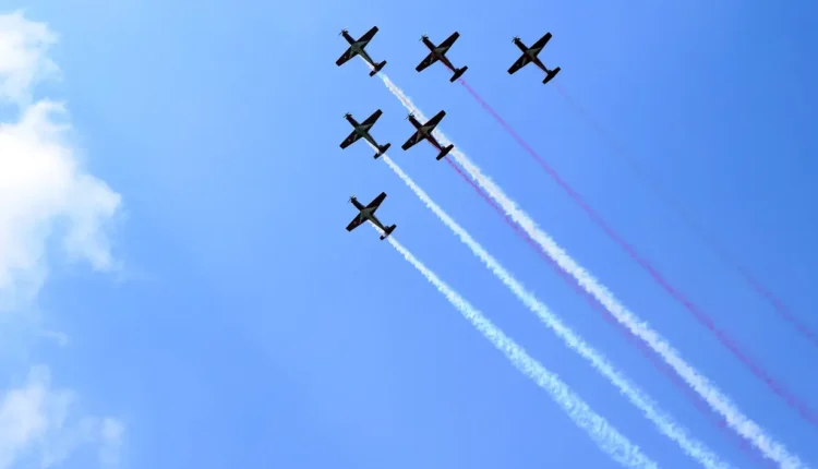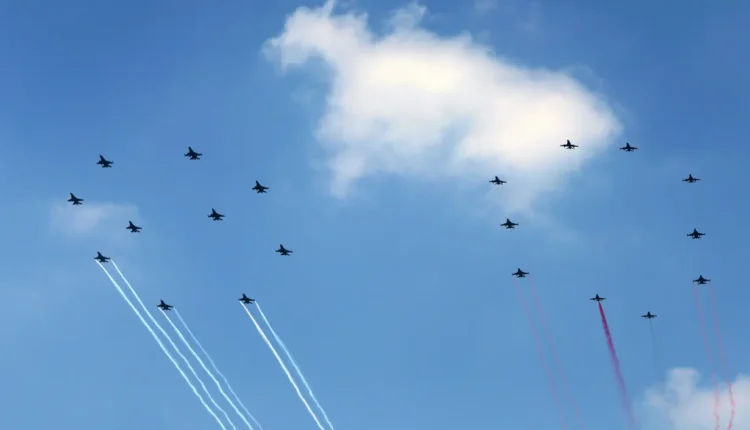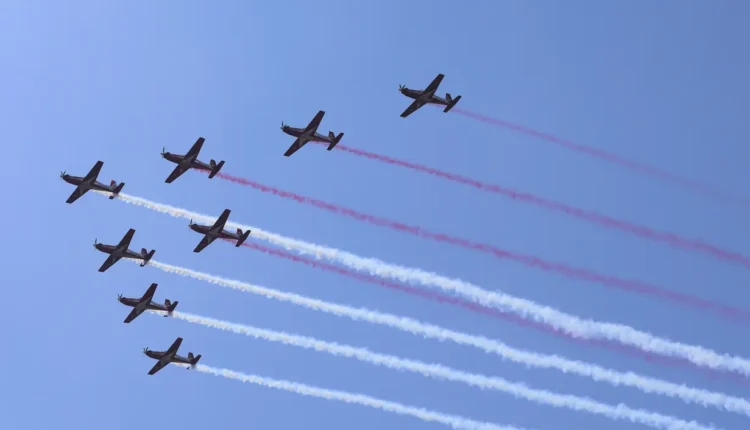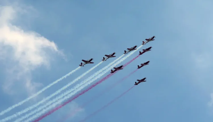 وفي مشهد مهيب، رسمت الطائرات أثناء تحليقها على ارتفاع منخفض شكلاً يشبه الرقم “٨٠”، في إشارة رمزية لمرور ثمانية عقود على استقلال البلاد. وقد أُعدّت هذه التشكيلة الجوية خصيصاً لإحياء هذه اللحظة التاريخية.