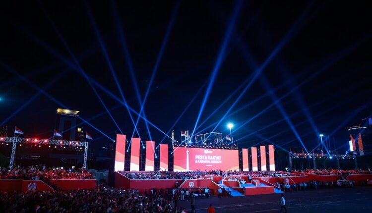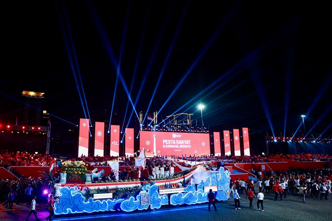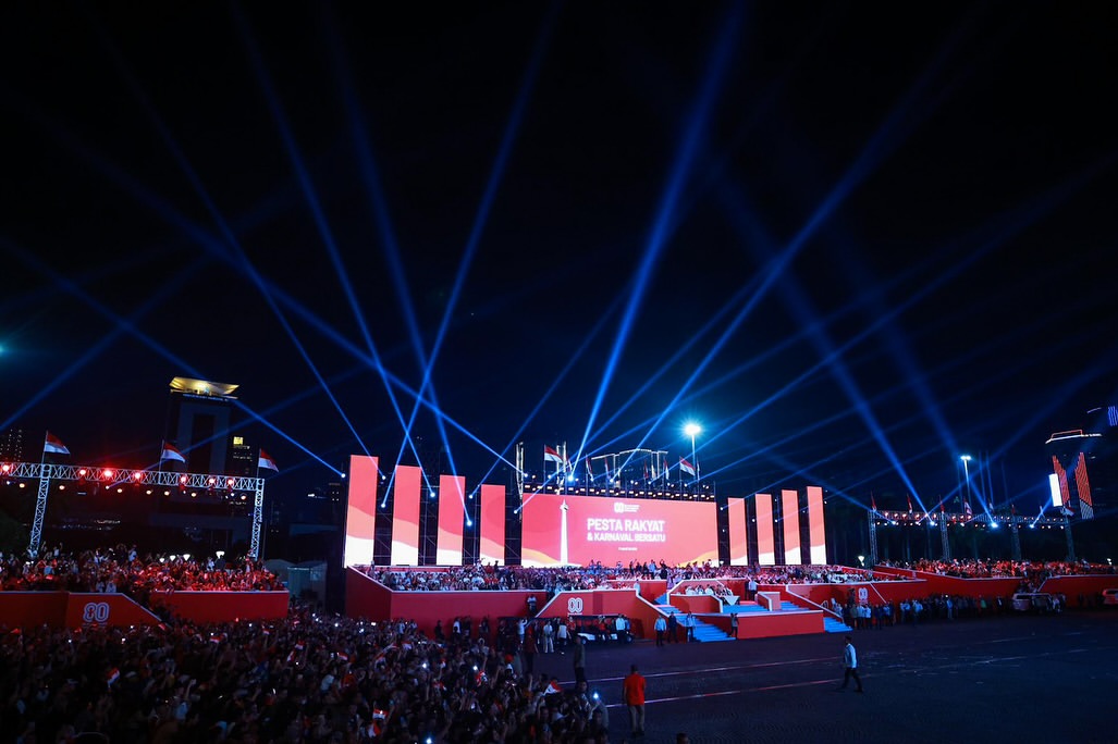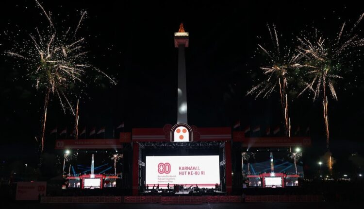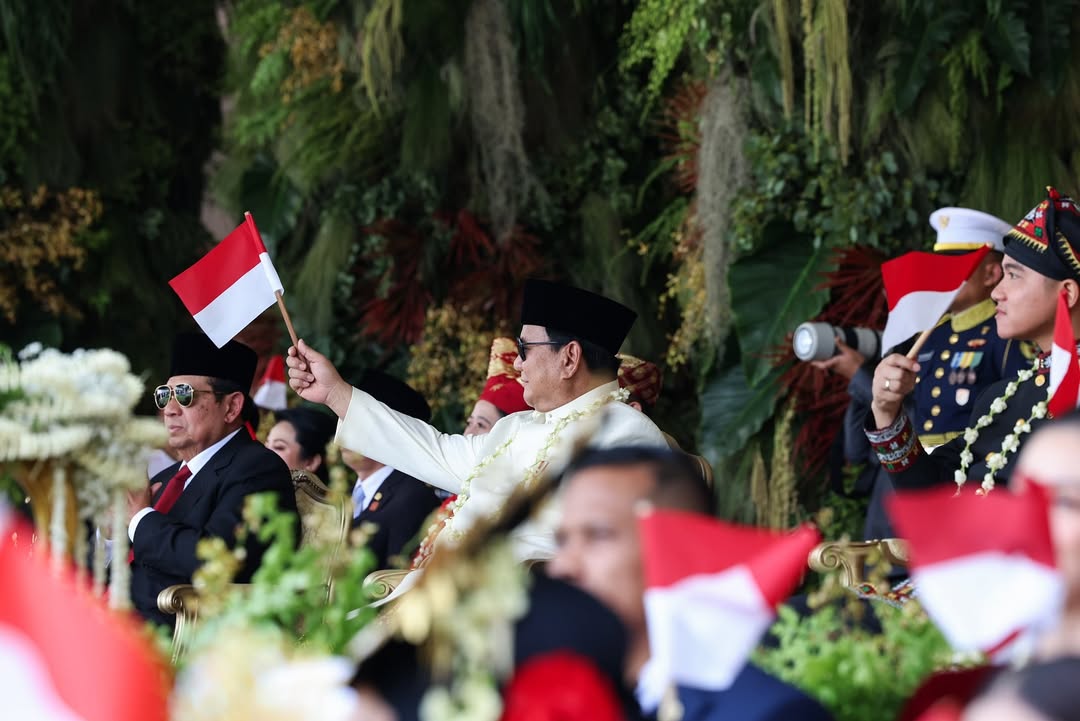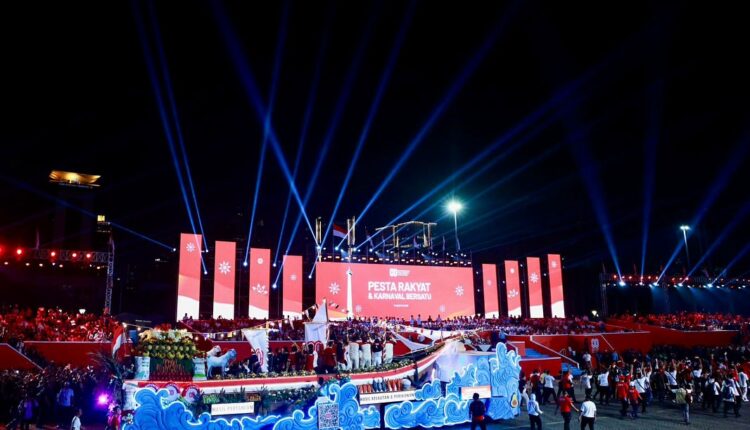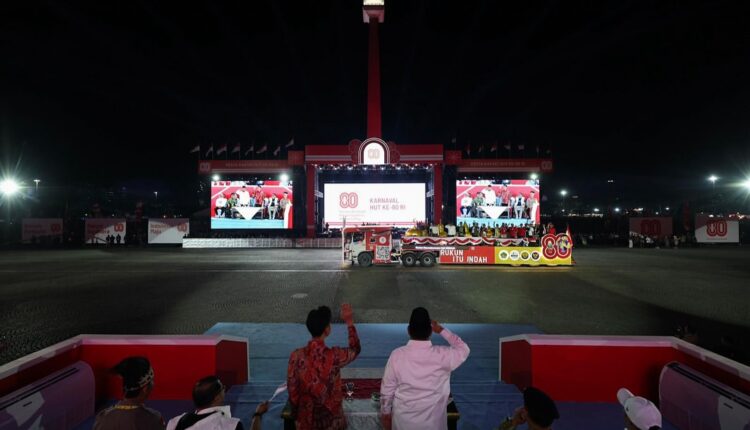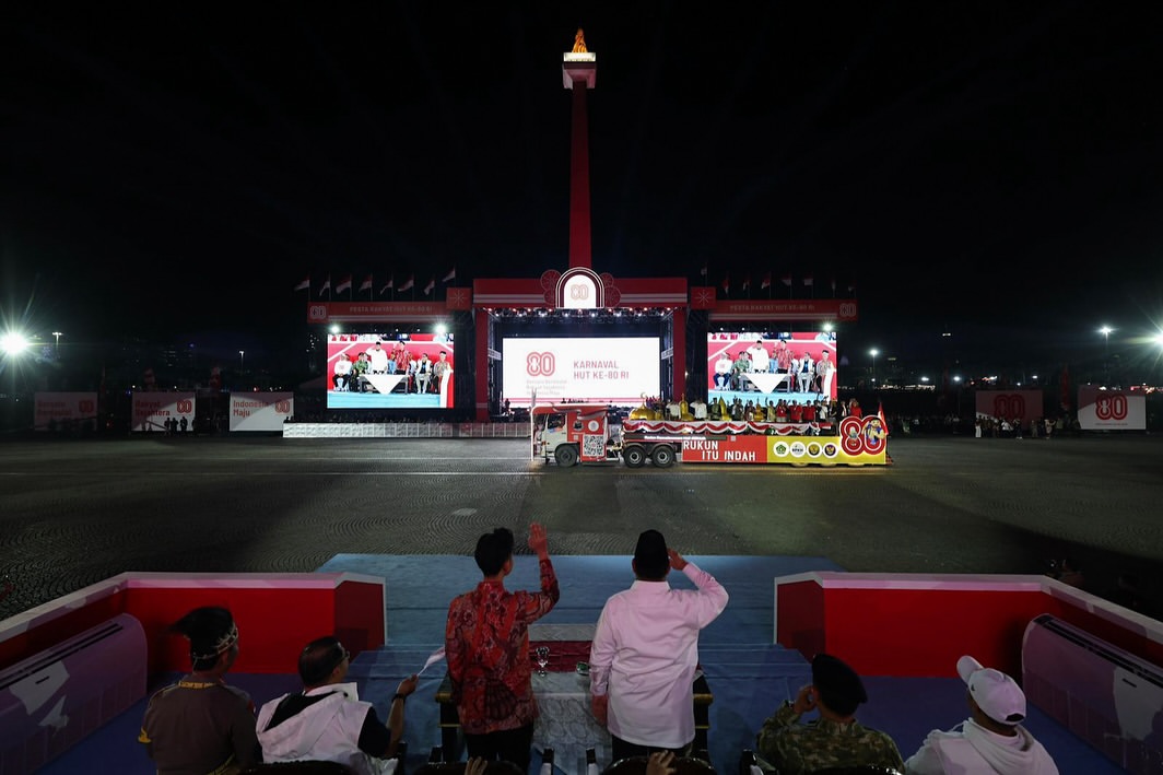 جاكرتا، إندونيسيا اليوم — شارك رئيس جمهورية إندونيسيا، برابوو سوبيانتو، في مهرجان الشعب وكارنفال الوحدة الذي أقيم في ميدان النصب التذكاري الوطني (موناس) بالعاصمة جاكرتا، ضمن ذروة الاحتفالات بالذكرى الـ٨٠ لاستقلال جمهورية إندونيسيا، يوم الأحد (١٧/٨/٢٠٢٥).