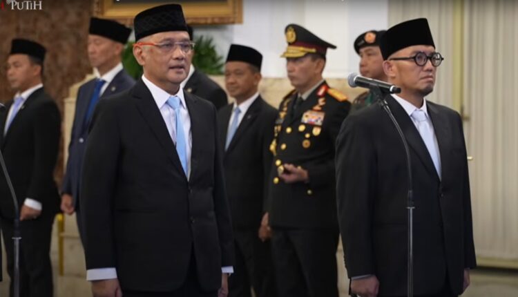 جاكرتا، إندونيسيا اليوم – أجرى الرئيس الإندونيسي برابوو سوبيانتو، يوم الإثنين، تعديلاً وزارياً شمل خمس وزارات استراتيجية في إطار “التشكيل الوزاري الأحمر والأبيض”، كما أعلن عن استحداث وزارة جديدة تُعنى بشؤون الحج والعمرة وأدى وزراؤها اليمين الدستورية في القصر الرئاسي.