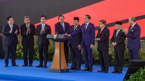 بعد الضغط على زر الإطلاق، شوهد برابوو يصافح جوكوي و//SBY// في لحظة رمزية.