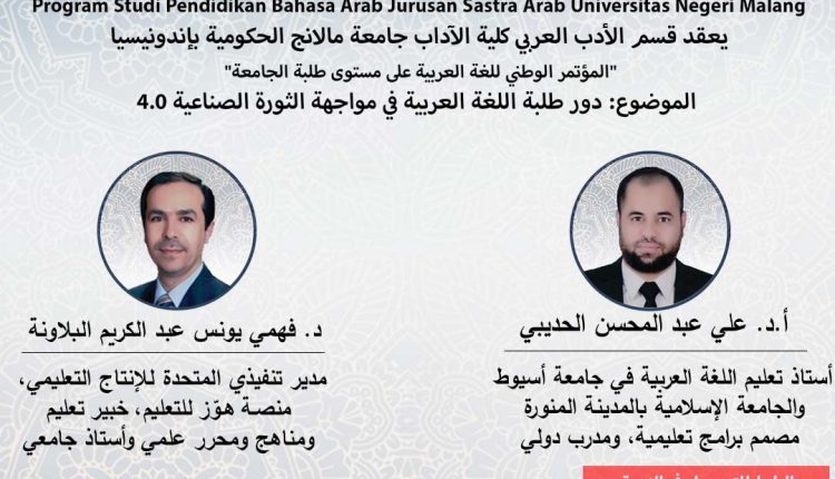 مالانج، إندونيسيا اليوم – نظم قسم الأدب العربي بجامعة مالانج الحكومية (Universitas Negeri Malang) بأندونيسيا الندوة الوطنية للغة العربية على مستوى طلبة الجامعة يوم السبت، 18 يوليو 2020م الموافق 27 ذو القعدة 1441 هــــ بعنوان دور طلبة اللغة العربية في مواجهة الثورة الصناعية 4.0.