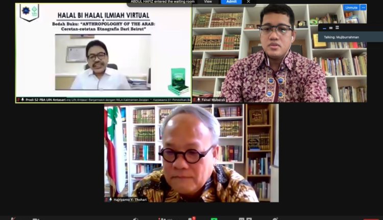 الثلاثاء الموافق 25 مايو 2021 بالتعاون مع IMLA-اتحاد مدرسي اللغة العربية بإندونيسيا-عقد قسم تعليم اللغة العربية بجامعة أنتساري الإسلامية الحكومية بنجرماسين  حفلة المعايدة وندوة افتراضية حول الثقافة العربية من خلال مناقشة كتاب تحت عنوان Anthropology Of The Arabs وهو عبارة عن مذكرات كتبه سعادة سفير جمهورية اندونيسيا لدى الجمهورية اللبنانية الاستاذ H.E.Hajiyanto.Y.Tohari الذي قدم من خلالها صورة أخرى للعالم العربي، حيث وصف الثقافة العربية اللبنانية تحديدًا بشكل متكامل وشيق.