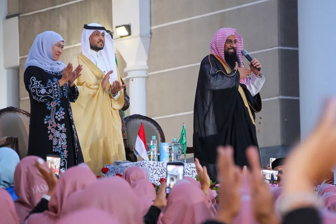 Dalam pembukaannya, Khofifah menyampaikan ucapan terima kasih pada Kerajaan Arab Saudi yang diwakili oleh kedutaan pemerintah Arab Saudi.