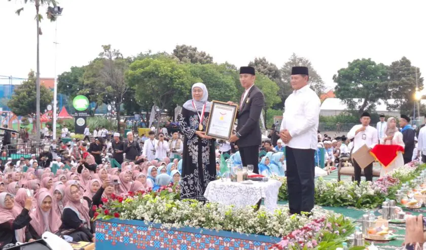 JAKARTA, INDONESIA ALYOUM.COM – Pemerintah Provinsi (Pemprov) Jawa Timur meraih penghargaan dari Museum Rekor Dunia Indonesia (MURI) dengan mengajak lebih dari 20 ribu warga untuk buka puasa bersama di Masjid Al-Akbar Surabaya pada Sabtu (21/2/2026).