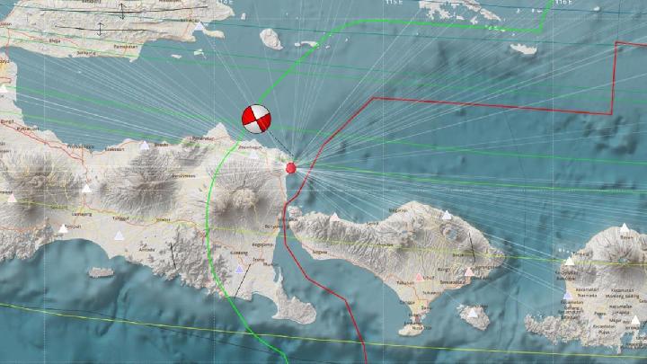 وكانت وكالة الأرصاد الجوية والمناخ والجيوفيزياء الإندونيسية قد أفادت في وقت سابق أنّ الزلزال وقع في البحر قبالة سواحل جاوة الشرقية وبالي، على بُعد ٤٠ كيلومتراً شمال شرقي مدينة بانيواڠي، وبعمق ١٢ كيلومتراً فقط.