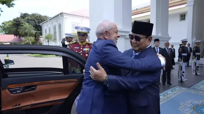 Prabowo greeted Lula upon arrival, shaking hands before the two leaders walked to the palace courtyard for a formal ceremony featuring both national anthems and an inspection of the guards of honor.