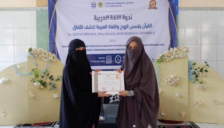 سوكابومي, إندونيسيا اليوم – ألقت خمس طالبات من المستوى الأخير بجامعة الراية محاضرات في ندوة اللغة العربية بعنوان “بالقرآن يلامس الروح، واللغة العربية تكشف الآفاق” بمعهد الترتيل، صباح يوم الجمعة (14/2/2025). شهدت الندوة حضور عشرات الطالبات من معهد الترتيل وأستاذاتهن، اللواتي أبدين حماسًا كبيرًا لمتابعة الموضوعات التي طرحتها المحاضِرات.