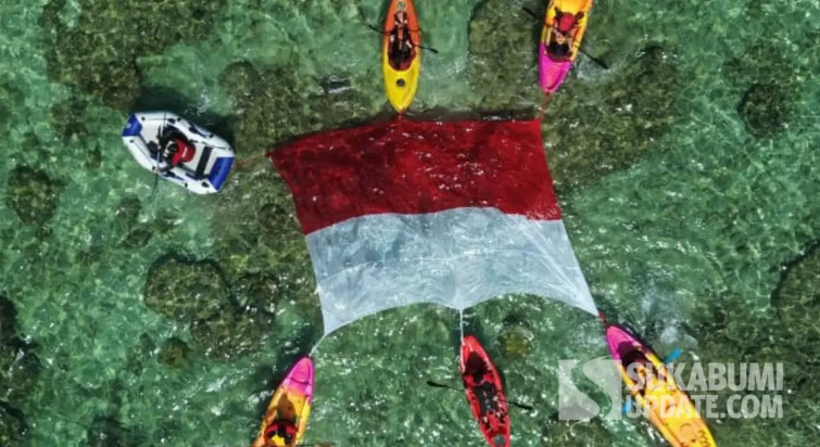Bendera Merah Putih di Laut Ujunggenteng Sukabumi, Wisata Bahari Indonesia