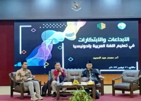 في عرضه ألقى الأستاذ الدكتور محمد عبد الحميد، MA، الكلام عن الإبداعات والابتكارات في تعليم اللغة العربية بإندونيسيا. أما الدكتور الخصيري فتحدث حول تسريع قدرات متعلمي اللغة العربية باستخدام طريقة المراجعة الذاتية للترجمة (TSR) في عصر المناهج المستقلة.