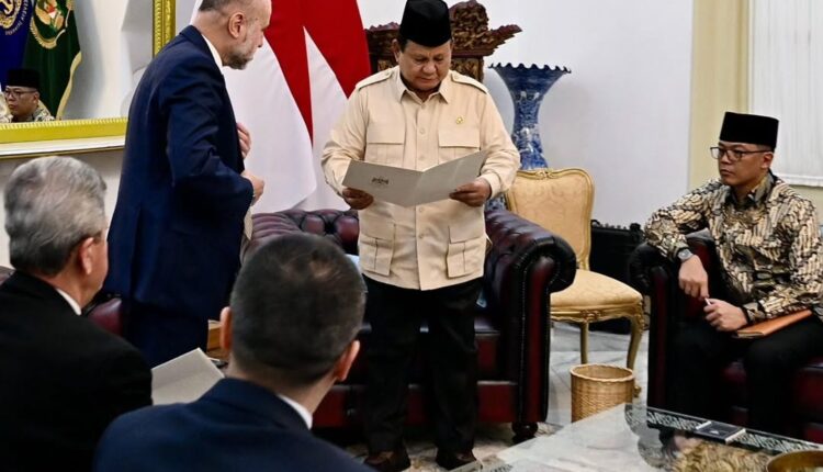 JAKARTA, INDONESIA ALYOUM.COM – Penasihat Presiden Otoritas Palestina untuk Urusan Agama sekaligus Hakim Syariah Tertinggi di Otoritas Palestina, Mahmoud Al-Habbash melakukan pertemuan dengan Presiden Prabowo Subianto untuk menyampaikan surat khusus dari Presiden Palestina, Mahmoud Abbas.