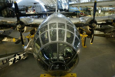 في مبنى المتحف الإضافي بالقرب من واشنطن، يتم عرض إينولا غاي المُرمَمة، وهي قاذفة أمريكية من طراز B-29 التي ألقت القنبلة الذرية على هيروشيما في 6 أغسطس/ آب 1945.