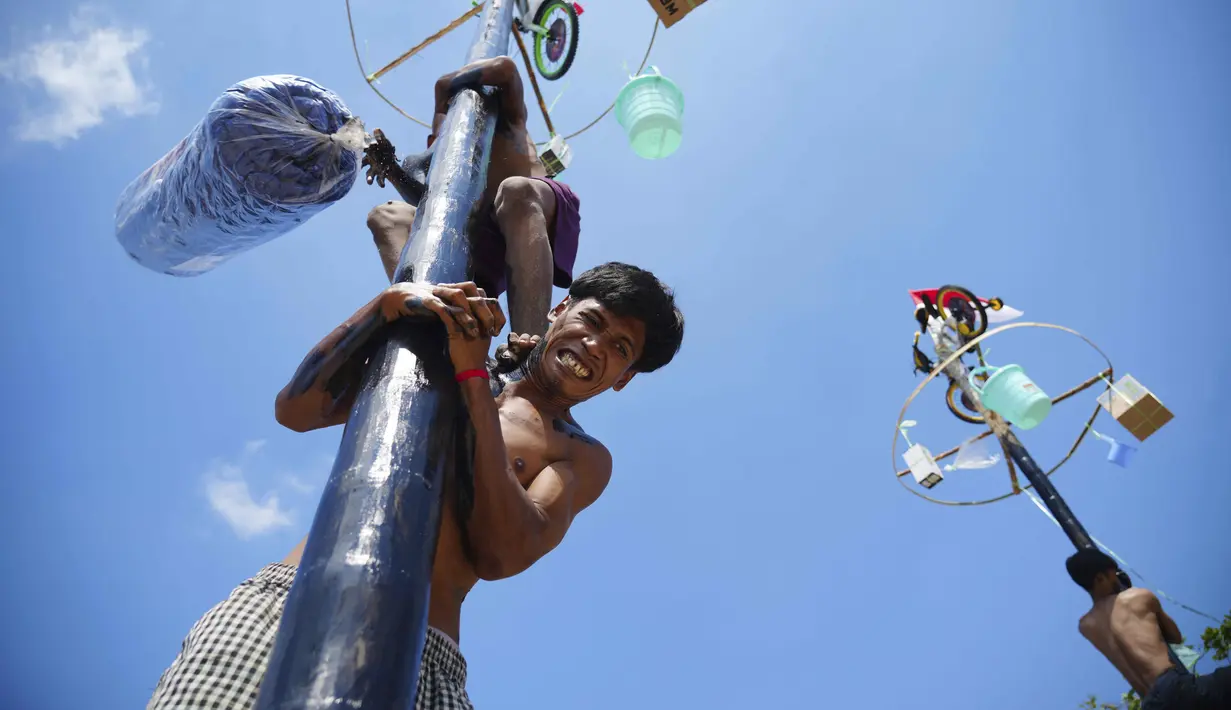 مسابقة تسلّق النخيل Lomba panjat pinang Palm Tree Climbing Competition