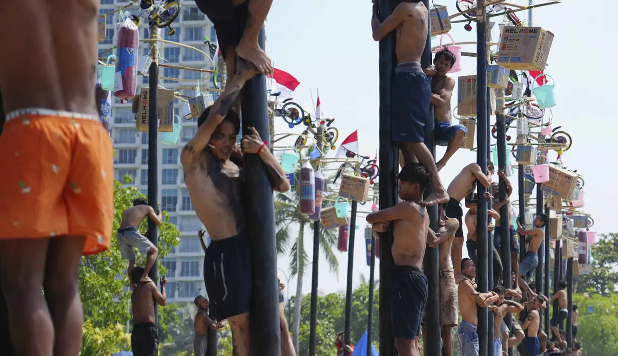 جاكرتا، ١٧ أغسطس ٢٠٢٥، إندونيسيا اليوم – في أجواء احتفالية مميزة بمناسبة الذكرى الـ٨٠ لاستقلال جمهورية إندونيسيا، احتضن شاطئ أنشول حدثاً شعبياً فريداً تمثّل في تنظيم مسابقة ضخمة لتسلّق النخيل، شارك فيها مئات المواطنين من مختلف الأعمار والفئات.