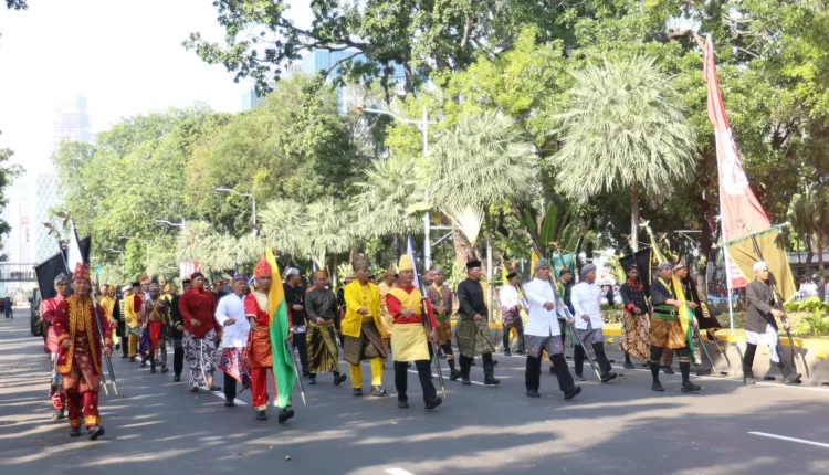 يشكّل موكب العلم والنص الطقوس الافتتاحية لسلسلة احتفالات الذكرى الـ٨٠ لاستقلال جمهورية إندونيسيا، ليجسد مزيجاً فريداً من الجدية والفرح، ويجمع بين رمزية تاريخ نضال الأمة وثراء تنوع ثقافات الأرخبيل.