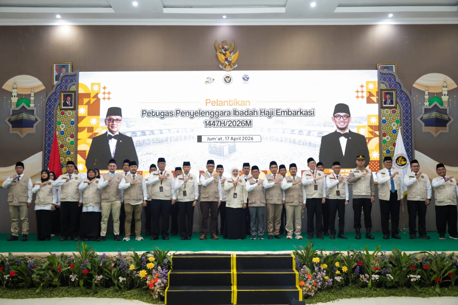 JAKARTA, INDONESIA ALYOUM.COM — Embarkasi menjadi ruang pertama dimana kehadiran negara dapat dirasakan oleh jemaah haji, sehingga dibutuhkan pelayanan terbaik dari para petugas. Hal ini disampaikan Menteri Haji dan Umrah RI, Mochamad Irfan Yusuf, saat melantik secara resmi Panitia Penyelenggara Ibadah Haji (PPIH) Embarkasi se-Indonesia Tahun 1447 H/2026 M di Asrama Haji Kelas I Surabaya.