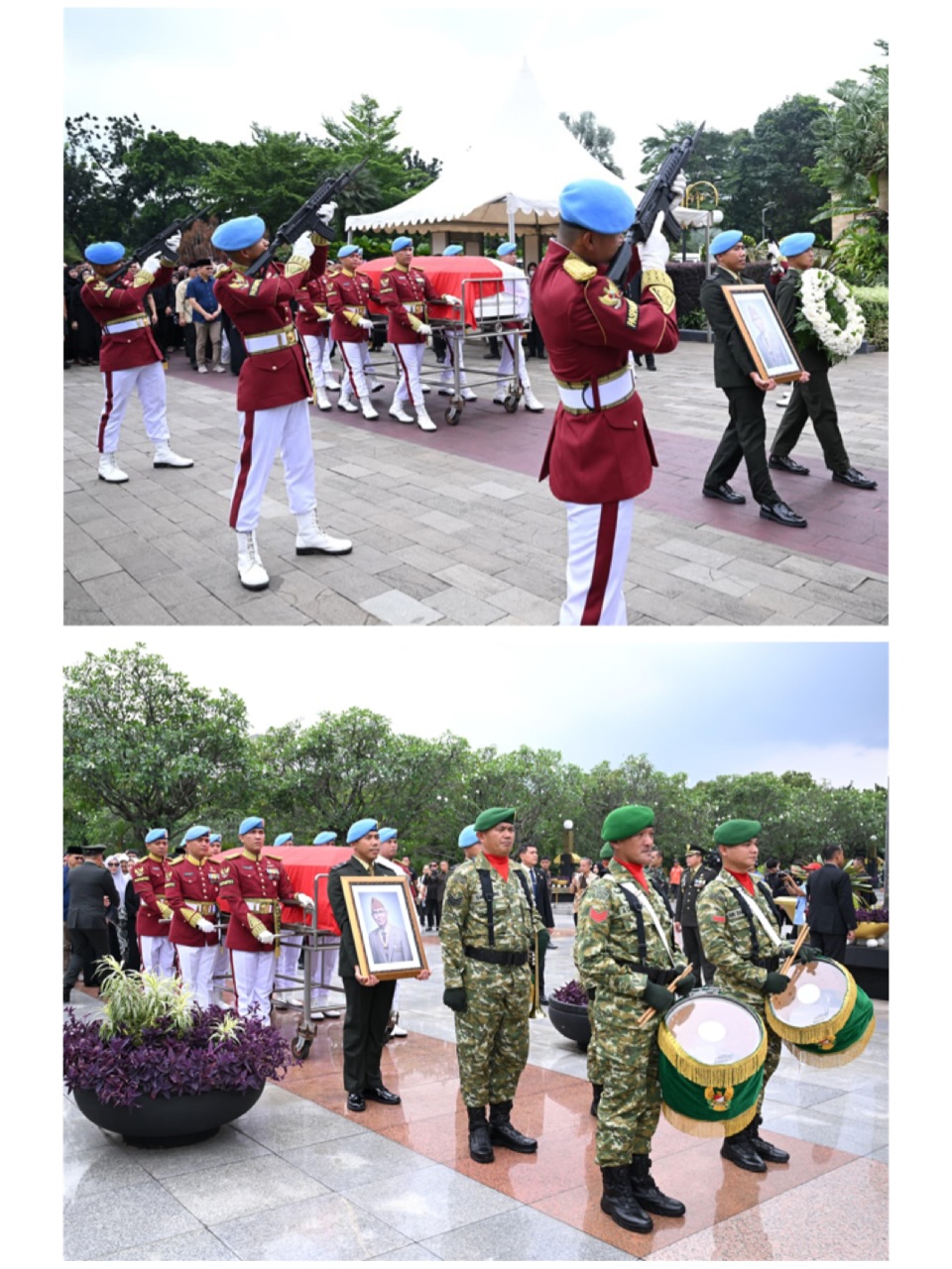 Pada hari yang sama, Presiden Prabowo Subianto memimpin langsung upacara pemakaman kenegaraan yang digelar di Taman Makam Pahlawan Nasional Utama Kalibata, Jakarta. Presiden mengantarkan jenazah almarhum ke peristirahatan terakhir dengan prosesi militer sebagai bentuk penghormatan negara.
