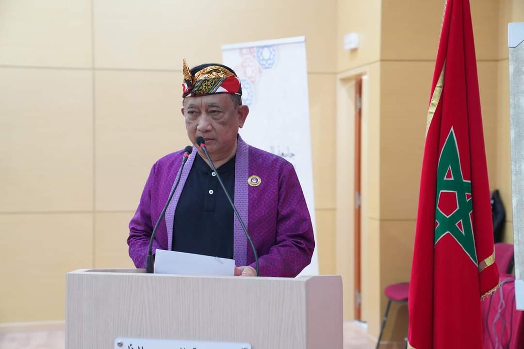 ومن جهته عبر سعادة سفير جمهورية أندونيسيا بالرباط السيد حشرل أزوار في بداية كلمته عن امتنانه بالشكر والتقدير للأستاذ الدكتور عبد اللطيف مكرم وموظفي الجامعة الذين سهلوا تنظيم هذا الحدث بمناسبة بمناسبة الذكرى 79 لاستقلال جمهورية إندونيسيا.
