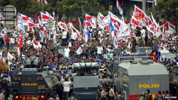 فرقت الشرطة الإندونيسية بخراطيم المياه والغاز المسيل للدموع، أمس، مظاهرة لأنصار جنرال سابق هزم في الانتخابات الرئاسية الأخيرة، وطعن في نتائج الاقتراع أمام القضاء الذي أيد نتيجتها أمس، حيث أقرت أعلى محكمة في إندونيسيا نتيجة الانتخابات الرئاسية التي أجريت الشهر الماضي، مما يمهد الطريق أمام تولي جوكو ويدودو رئاسة ثالث أكبر ديمقراطية في العالم.