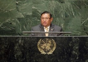 وفي كلمته أمام الجمعية العامة للأمم المتحدة، قال وزير خارجية ميانمار، واينا لوين، إن بلاده تبذل جهودا كبيرة من أجل معالجة قضية العنف الطائفي  في ولاية أراكان، مشيرا إلى ضرورة تفهم الوضع في الولاية وتاريخها وتنوع وتعقيد المسألة، قبل القفز إلى الاستنتاج، وأضاف: ” لا ينبغي أن ينظر للوضع بطريقة سطحية والمجتمع الدولي يجب أن يساهم بشكل عملي وموضوعي في إيجاد حل دائم. ولمعالجة الأسباب الجذرية نحن نعمل من أجل السلام والاستقرار والوئام وتنمية جميع الأشخاص في ولاية أراكان، ويجري وضع اللمسات الأخيرة على خطة العمل وسيتم إطلاقها قريبا وسيتم تنفيذها بطريقة منتظمة وفي الوقت المناسب.”
