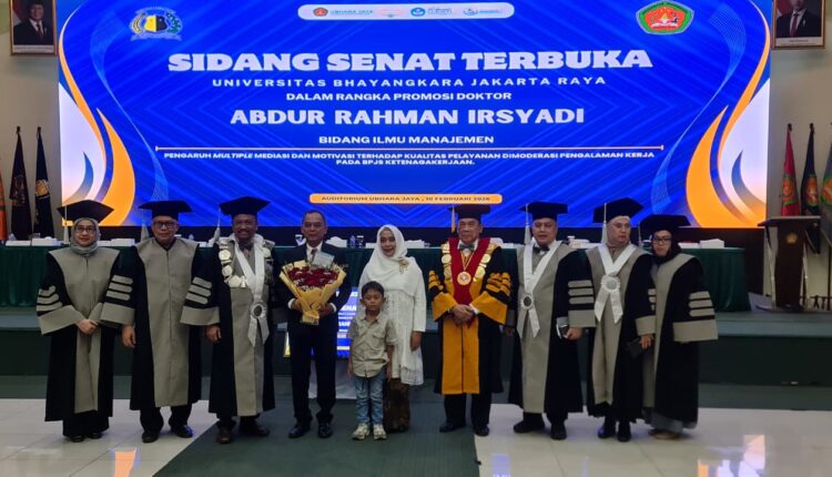 Jakarta, Indonesia Alyoum, 10 Februari 2026 — Upaya peningkatan kualitas layanan BPJS Ketenagakerjaan menjadi fokus utama dalam Sidang Terbuka Disertasi Program Doktor Ilmu Manajemen Universitas Bhayangkara Jakarta Raya, yang disampaikan oleh Abdur Rahman Irsyadi. Disertasi ini mengkaji secara mendalam bagaimana kualitas layanan BPJS Ketenagakerjaan dapat ditingkatkan secara lebih adil, konsisten, dan berkelanjutan, khususnya di tengah meningkatnya tuntutan masyarakat pekerja terhadap layanan yang cepat, mudah, dan transparan.