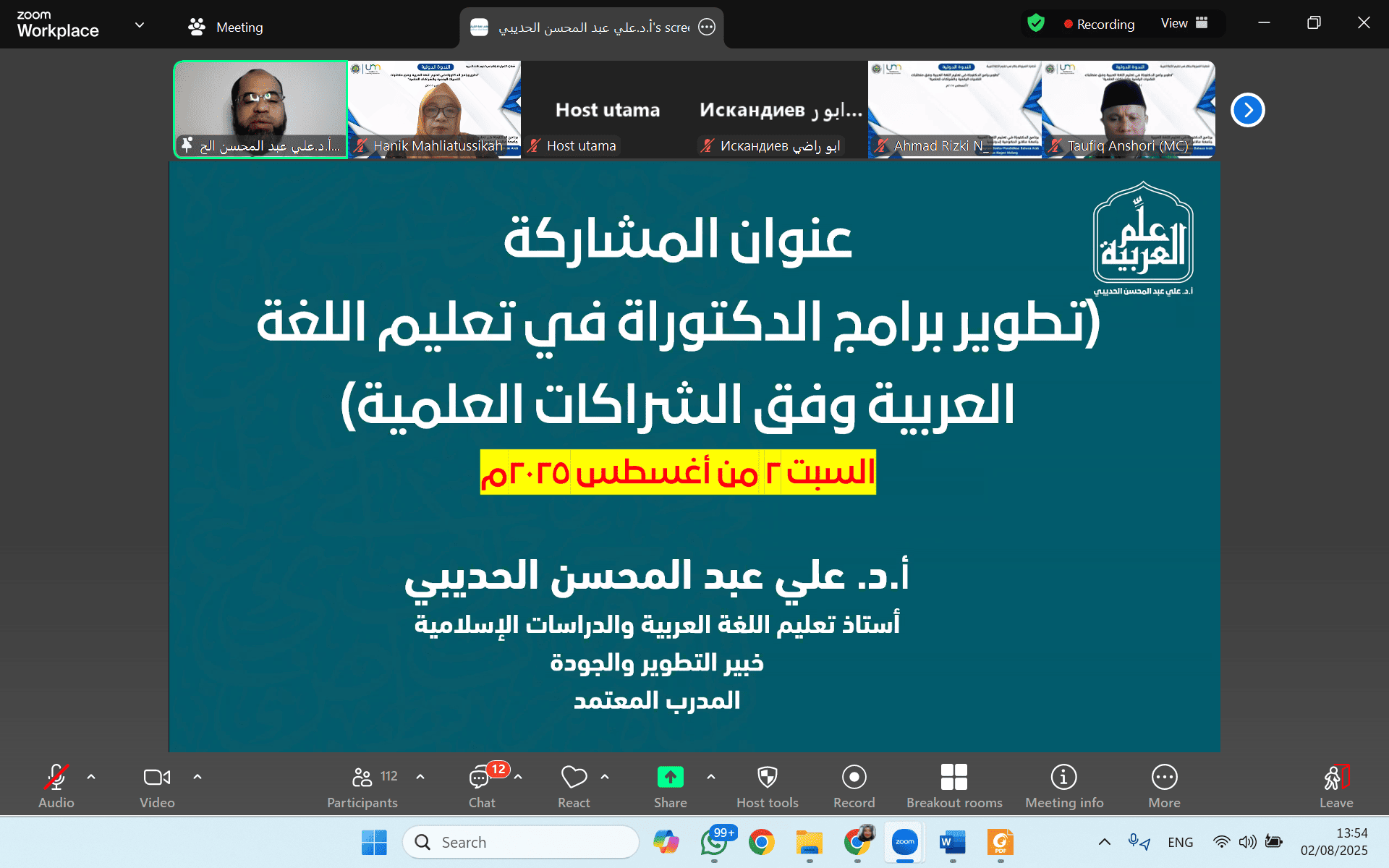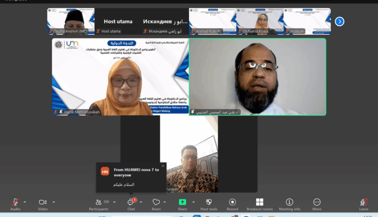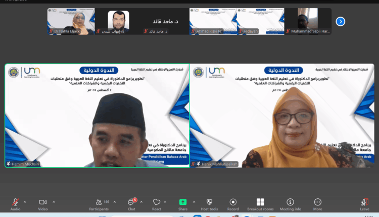 MALANG, INDONESIAALYOUM.COM – Program Doktor Pendidikan Bahasa Arab (PBA) Universitas Negeri Malang (UM) yang baru dibuka pada tahun 2025 ini mengawali kegiatan perkuliahan dengan menyelenggarakan Seminar Internasional. Tajuknya “Pengembangan Kurikulum Program Doktor Pendidikan Bahasa Arab Berbasis Teknologi Digital dan Kemitraan.” Acara yang dilaksanakan pada Sabtu, 2 Agustus 2025 pukul 13.00 WIB ini terbuka secara gratis dan berhasil menarik lebih dari 150 peserta yang terdiri atas mahasiswa dan dosen bahasa Arab dari pascasarjana berbagai perguruan tinggi dalam dan luar negeri.