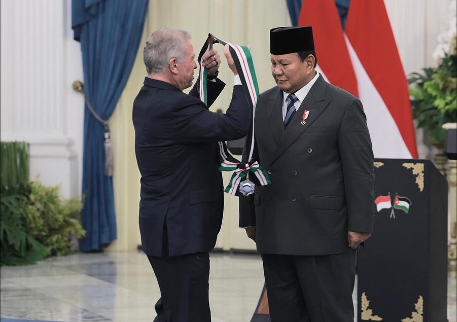 جاكرتا، إندونيسيا اليوم — قدّم جلالةُ الملك عبد الله الثاني ابن الحسين، عاهلُ المملكة الأردنية الهاشمية، أرفعَ أوسمةِ الدولة الأردنية إلى الرئيس الإندونيسي برابوو سوبيانتو خلال زيارةٍ إلى قصر مرديكا في جاكرتا مساءَ الجمعة، ١٤ نوفمبر/تشرين الثاني ٢٠٢٥، في خطوةٍ تحملُ دلالاتٍ سياسيةً ورمزيةً على متانةِ العلاقات الثنائية.