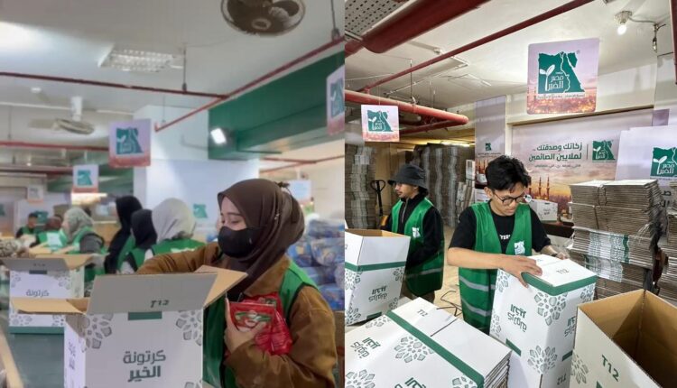 Pengemasan dilakukan untuk menyiapkan bantuan kemanusiaan yang akan dikirimkan bagi warga Palestina selama bulan suci Ramadhan. Setiap paket berisi kebutuhan pokok seperti minyak goreng, pasta, beras, gula, serta sejumlah bahan pangan khas Mesir lainnya.