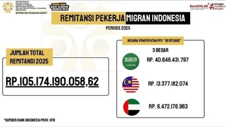 ووفق بيانات بنك إندونيسيا – فرع نوسا تنغارا الغربية، بلغ إجمالي تحويلات العمّال المهاجرين من الإقليم خلال عام ٢٠٢٥ نحو ١٠٥٫١٧ مليار روبية.